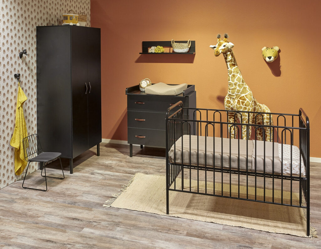 De meeste mensen kiezen voor een witte of houten babykamer. Een kamer met zachte tinten. Zwart vinden we vaak toch allemaal een moeilijk kleur. Ook in het algemeen zie je in een interieur niet veel zwart. Toch is daar een aantal jaar geleden verandering in gekomen. Een aantal jaar geleden ontstond er namelijk een nieuwe trend: industrieel wonen. En bij deze trend worden vaak zwarte meubels gebruikt. Deze trend startte in de woonkamer maar is nu toe te passen in elke ruimte van het huis dus ook in de babykamer.