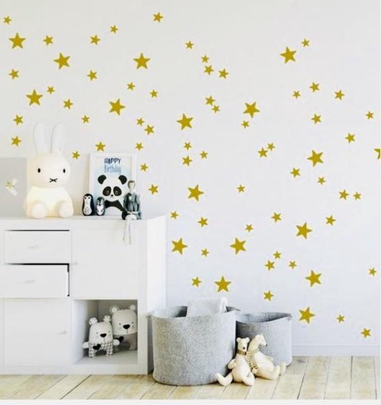 Het thema sterren kan je op allerlei verschillende manieren gebruiken. Je kan er voor kiezen om de muren te verven en verder aan te kleden met sterrenaccessoires. Je kan ook gebruik maken van behang.